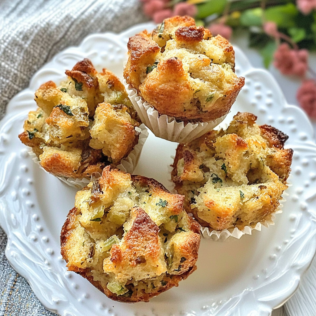 Stuffing muffins are individual portions of traditional stuffing baked in muffin tins. They offer crispy edges and soft centers, perfect for enjoying during festive meals.
